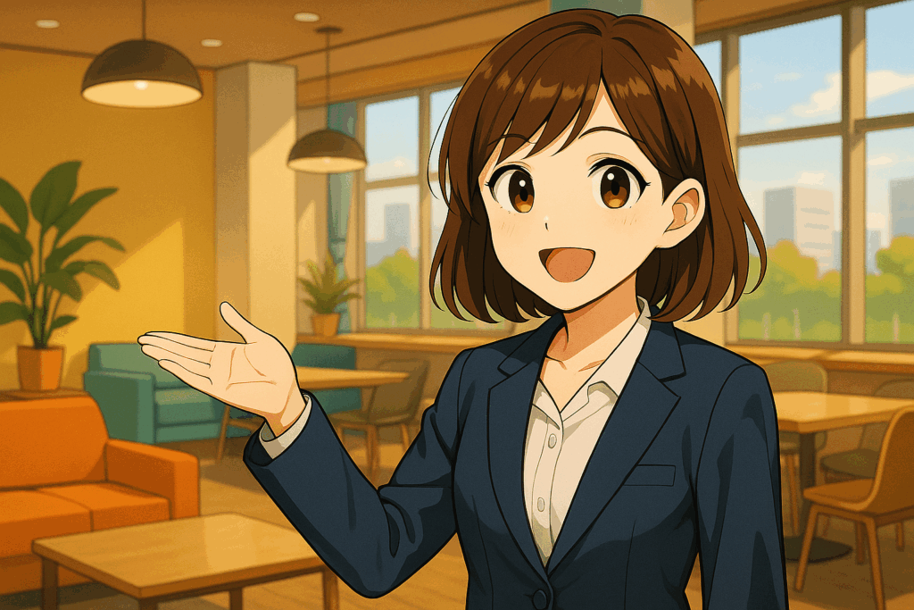 本会場は、事務所提携先である「株式会社ハイロメル(HIROMERU Inc.)」の拠点内に位置し、落ち着いたカフェ風の内装を備えた多目的スペースとなっております。